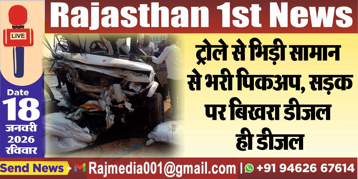 ट्रोले से भिड़ी सामान से भरी पिकअप, सड़क पर बिखरा डीजल ही डीजल-Bikaner News