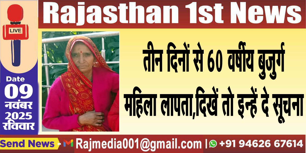 तीन दिनों से 60 वर्षीय बुजुर्ग महिला लापता,दिखें तो इन्हें दे सूचना-Bikaner News