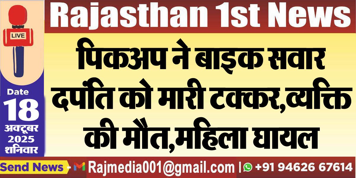 पिकअप ने बाइक सवार दपंति को मारी टक्कर,व्यक्ति की मौत,महिला घायल-Bikaner News