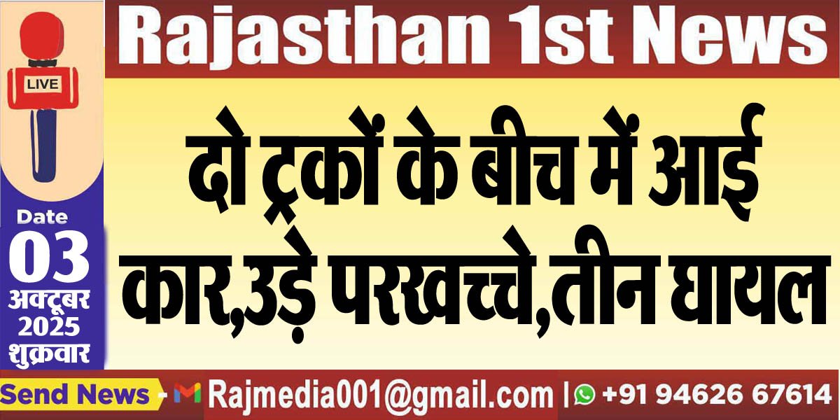 दो ट्रकों के बीच में आई कार,उड़े परखच्चे,तीन घायल-Bikaner News