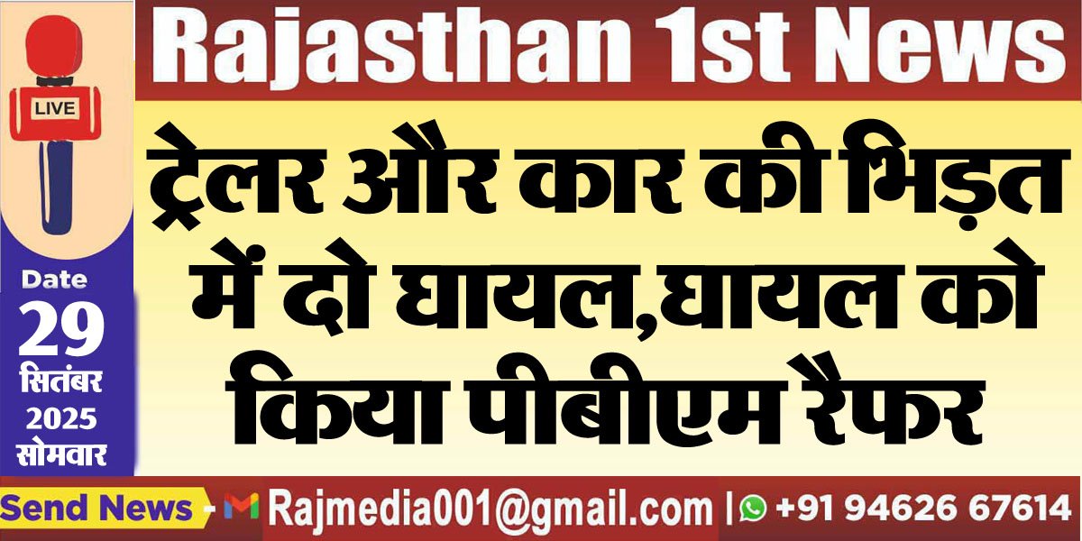 ट्रेलर और कार की भिड़त में दो घायल,घायल को किया पीबीएम रैफर-Bikaner News