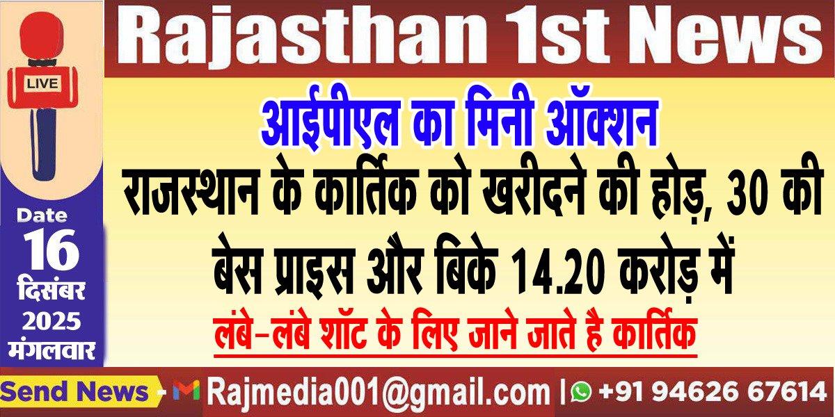 राजस्थान केे कार्तिक को खरीदने की होड़, 30 की बेस प्राइस और बिके 14.20 करोड़ में-Ipl Auction