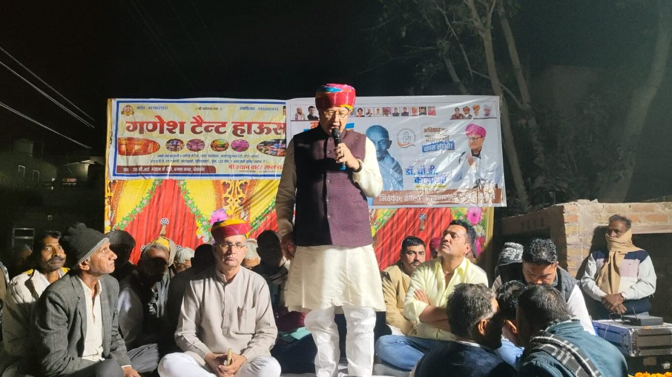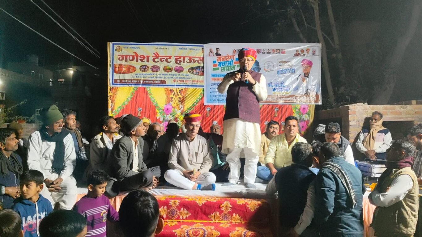 Bikaner News राजस्थान 1st न्यूज,बीकानेर। मनरेगा बचाओ संग्राम के अंतर्गत आज बगला नगर वार्ड 01 में विशाल सभा का आयोजन रखा गया। जिसमें पूर्व कैबिनेट मंत्री डॉ बीडी कल्ला, जिलाध्यक्ष मदन गोपाल मेघवाल, ब्लॉक अध्यक्ष जाकिर नागौरी, यूथ काग्रेस के अध्यक्ष भंवर कूकना, तोल राम सियाग, पार्षद प्रतिनिधि मुनीराम कूकना, मंडल अध्यक्ष मुकेश जोशी, स्थानीय निकाय प्रकोष्ठ जिला अध्यक्ष हसन अली गोरी, हरि किशन जाट सहित अनेेक गणमान्य नागरिक मौजूद रहें।