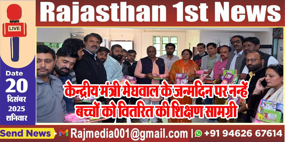 केन्द्रीय मंत्री मेघवाल के जन्मदिन पर नन्हें बच्चों को वितरित की शिक्षण सामग्री