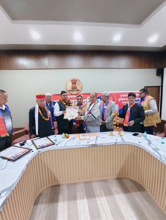 राजस्थान 1st न्यूज,बीकानेर। बीकानेर जिले के 4 पुलिस अधिकारियों की सेवानिवृति पर राजस्थान सेवानिवृत पुलिस कल्याण संस्थान द्वारा एक विशेष सम्मान समारोह थाना सदर परिसर में आयोजित किया गया। इस अवसर पर पुलिस विभाग से अपनी शानदार सेवाऐं पूरी कर सेवानिवृत होने वाले पुलिस अधिकारी देवीदान, दिलीप सिंह, मोहन लाल हैड कानिस्टेबल एवं रोहिताश कानिस्टेबल को संस्थान द्वारा भावभीनी विदाई और भव्य अभिनंदन किया गया।