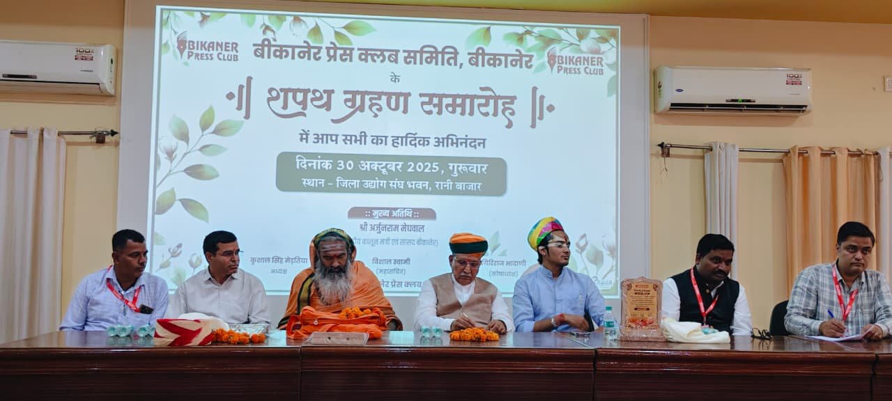 मेघवाल गुरुवार को जिला उद्योग संघ भवन में आयोजित बीकानेर प्रेस क्लब के शपथ ग्रहण समारोह में मुख्य अतिथि के रूप में संबोधित कर रहे थे। मेघवाल ने बीकानेर प्रेस क्लब के शपथ ग्रहण समारोह में नवनिर्वाचित अध्यक्ष कुशाल सिंह मेड़तिया, महासचिव विशाल स्वामी, कोषाध्यक्ष गिरिराज भादाणी समेत पूरी कार्यकारिणी को शपथ दिलवाई। शपथ ग्रहण समारोह लालेश्वर महादेव मंदिर शिवबाड़ी के महंत श्री विमर्शांनंद महाराज के सानिध्य में संपन्न हुआ। कार्यक्रम की अध्यक्षता जिला उद्योग संघ अध्यक्ष डीपी पचीसिया और मुदित खंजाची ने की।