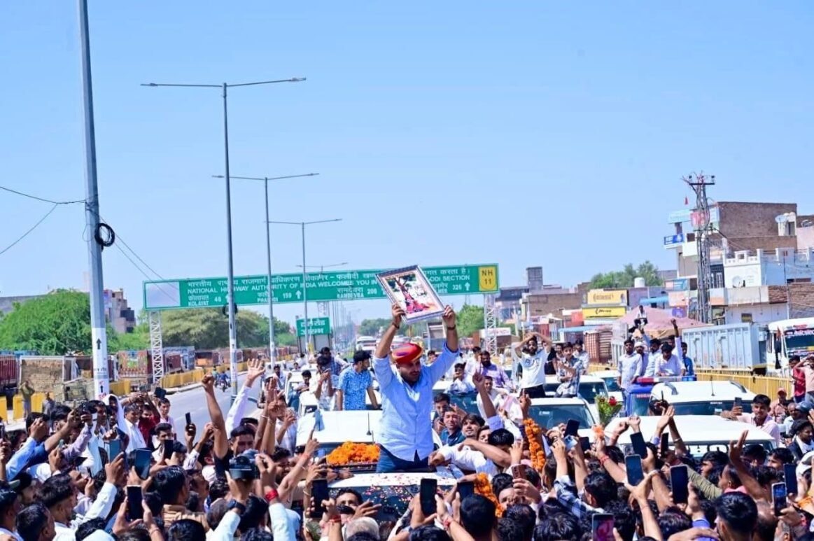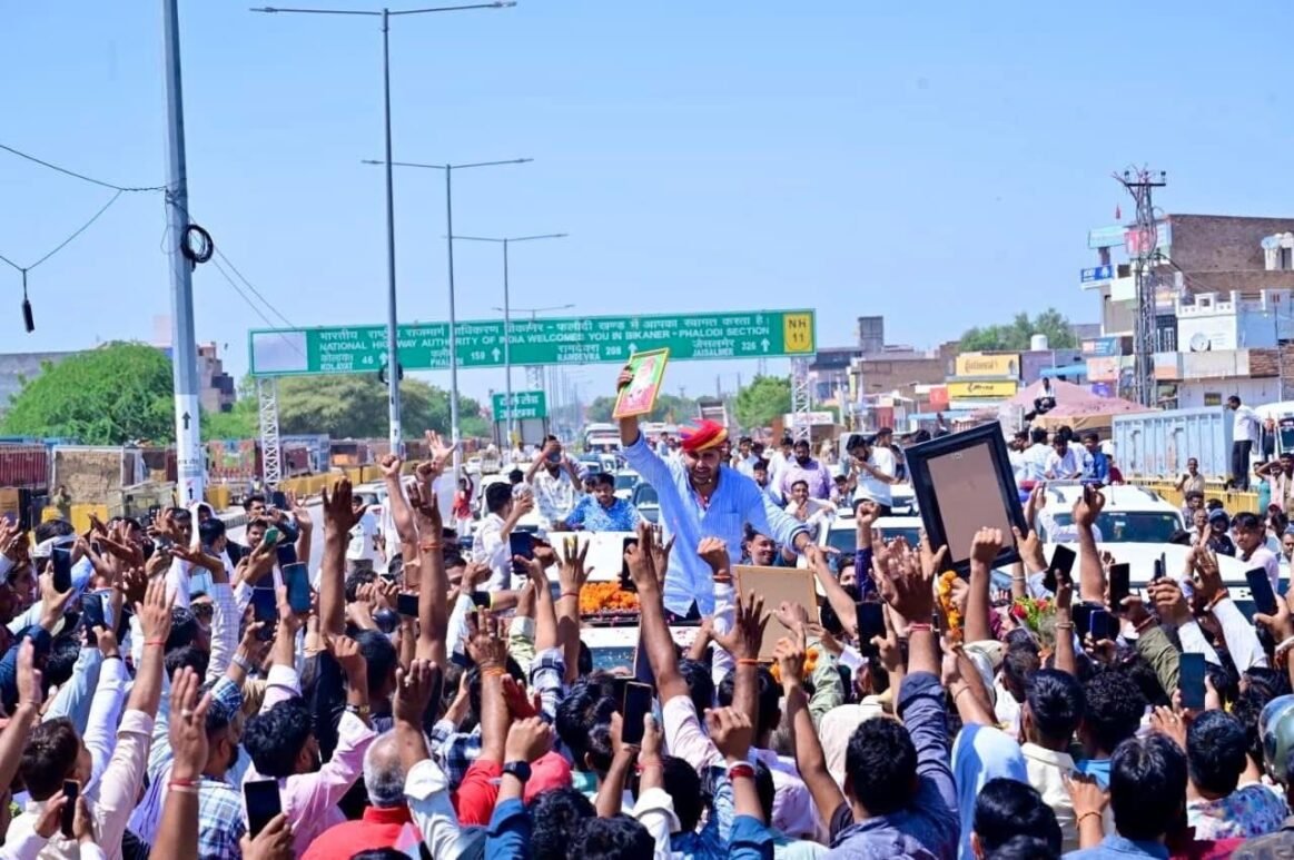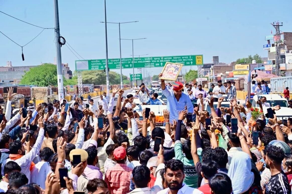 राजस्थान फस्र्ट न्यूज,बीकानेर। आज विभिन्न कार्यक्रमों में शिरकरत करने के लिए शिव से निर्देलीय विधायक रविन्द्र सिंह भाटी बीकानेर में है। नाल एयरपोर्ट से लेकर अब तक शोभासर चौराहे तक भाटी का भव्य स्वागत किया जा रहा है। हर और युवाओं में भाटी के प्रति जोश दिखाई दिया। भाटी के समर्थकों ने जगह-जगह पर जेसीबी से फूलों की बारिश का स्वागत किया