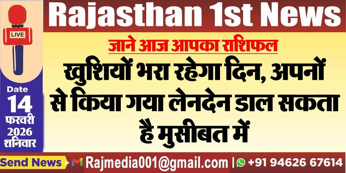 मेष राशि- आज का दिन आपके लिए खुशियों से भरा रहने वाला है। आज ख़ास काम बन जाने से आपका मनोबल बढ़ेगा। आज किसी भी प्रकार का इन्वेस्टमेंट करते समय अपने बजट का ध्यान रखें। इस राशि के जो लोग जॉब करते हैं उनकी तरक्की के योग बन रहे हैं, साथ ही आपका स्थान परिवर्तन भी हो सकता हैं। परिवार के सामने आपको अपनी राय रखने का पूरा मौका मिलेगा। आज आपका आर्थिक पक्ष मजबूत रहेगा। आपको अपनी वाणी पर संयम बनाये रखना चाहिए।
