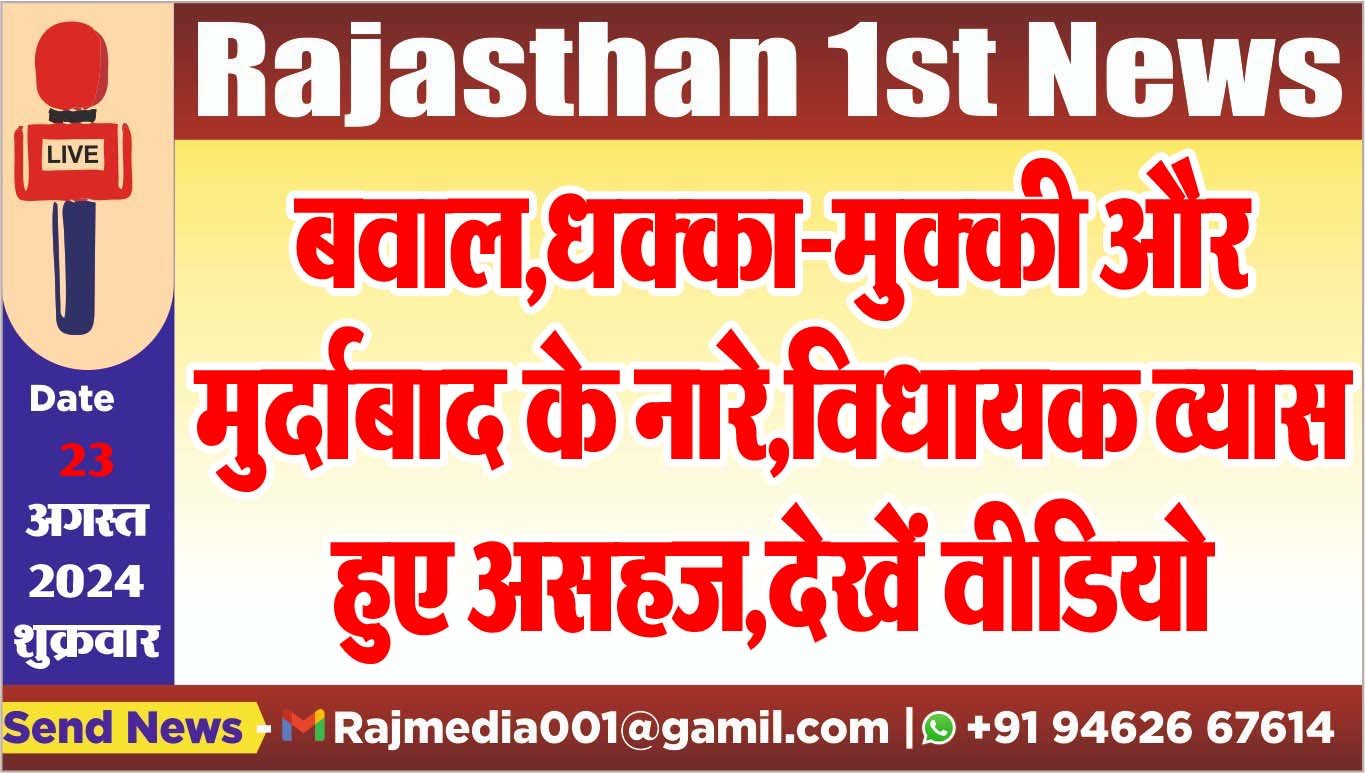राजस्थान 1st न्यूज,बीकानेर। वीडियो देखने के लिए इस लिंक पर क्लिक करें। बीकानेर में आज विधायक के सामने ही विरोध की वीडियो सामने आयी है। घटना शहर के गोपीनाथ मंदिर क्षेत्र की है। जहां पर आज पानी की टंकी के लिए भूमि पूजन था। विधायक जेठानंद व्यास के भूमि पूजन के लिए पहुचते ही वहां मौजूद लोगों ने विरोध शुरू कर दिया। जैसे-जैसे विधायक व्यास आगे बढ़े ये विरोध के स्वर और तेज हो गए। एकबारगी तो विधायक व्यास और आमजन आमने-सामने हो गए। इस दौरान विधायक व्यास ने आमजन केा हटाने का प्रयास किया तो कुछ पलों की लिए धक्का-मुक्की भी हुई। जिसके बाद विधायक व्यास असहज हो गए हालांकि कुछ देर बाद माहौल शांत हुआ तो टँकी के लिए भूमि पूजन भी हुआ। विधायक व्यास की मौजूदगी में भी वहां के लिए मुर्दाबाद के नारे लगाते रहें। इस दौरान कई भाजपा नेता भी मौजूद रहें। ऐसा माहौल देखकर एकबारगी जेठानंद व्यास सकपता गए और असहज हो गए।
