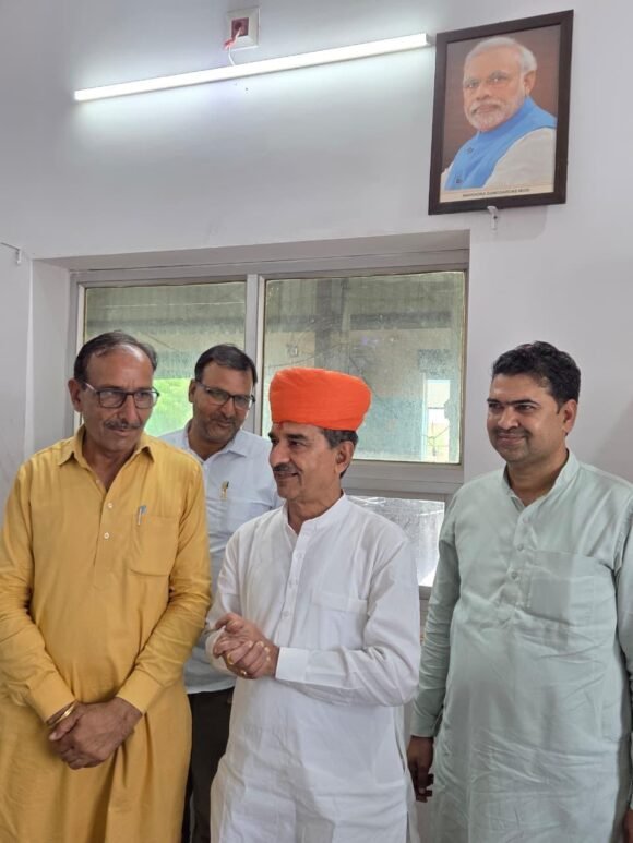 राजस्थान 1st न्यूज,बीकानेर। भाजपा के प्रदेशाध्यक्ष मदन राठौड़ दो दिनों तक बीकानेर के दौरे पर रहें। इस दौरान राठौड़ ने विभिन्न कार्यक्रमों में शिरकत की। इसी कड़ी में देहात भाजपा के पूर्व जिला महामंत्री,पूर्व जिला उपाध्यक्ष कुंभाराम सिद्ध के यहां भी पहुंचे। जहां पर राठौड़ का भाजपा नेता कुंभाराम सिद्ध द्वारा साफा पहनाकर स्वागत किया गया। सिद्ध ने बताया कि राठौड़ ने हमारे प्रतिष्ठान थार डेयरी का भी अवलोकन किया और व्यवस्था देखकर प्रसन्नता व्यक्त की। राठौड़ ने इस दौरान सिद्ध को बधाई देते हुए कहा कि इमानदार और मेहनती कार्यक्रर्ता ही संगठन की असली पूंजी है।