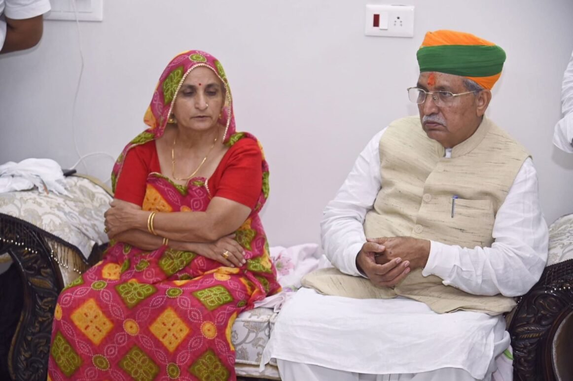 राजस्थान 1st न्यूज,बीकानेर। बीती रात को केन्द्रीय कानून मंत्री अर्जुनराम मेघवाल दिग्गज नेता रामेश्वरलाल डूडी के आवास पहुंचे। जहां पर अर्जुनराम ने डूडी के स्वास्थ्य को लेकर जानकारी ली। इस दौरान डूडी की धर्मपत्नी और नोखा विधायक सुशीला डूडी से अर्जुनराम ने स्वास्थ्य को लेकर बातचीत की। इस दौरान सुशीला डूडी सहित परिवार के लोग मौजूद रहें।